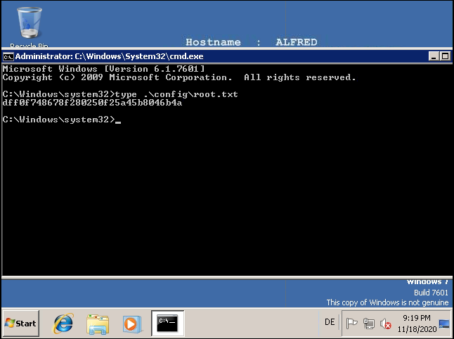 | kali@kali:~/CTFs/tryhackme/Alfred$ nc -lnvp 9001