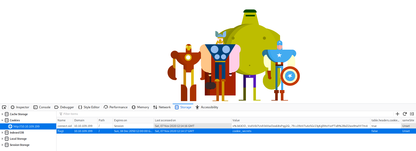 - On the deployed Avengers machine you recently deployed, get the flag1 cookie value.
