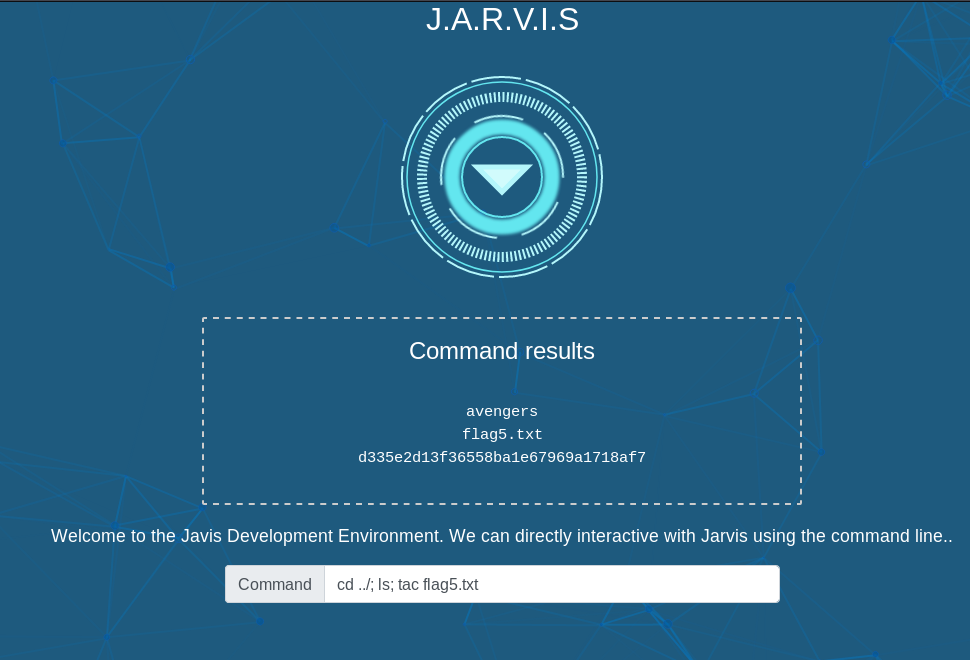 You should be logged into the Jarvis access panel! Here we can execute commands on the machine.. I wonder if we can exploit this to read files on the system.