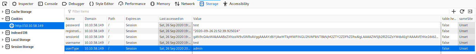 Double left-click the “Value” column of “userType” to modify the contents. Let’s change our userType to “admin” and navigate to http://MACHINE_IP/admin to answer the second flag.