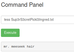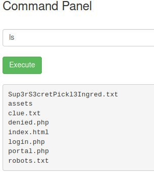 portal.php: echo "</br><p><u>Command disabled</u> to make it hard for future <b>PICKLEEEE RICCCKKKK</b>.</p><img src='assets/fail.gif'>";