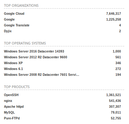 - Under Google’s ASN in Los Angeles, what is the top operating system according to Shodan?