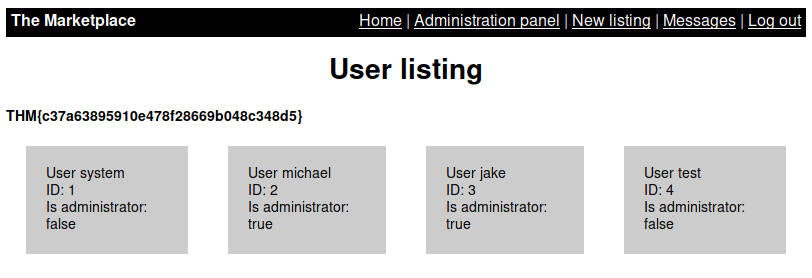 [14:25:16] [INFO] table 'marketplace.messages' dumped to CSV file '/home/kali/.local/share/sqlmap/output/10.10.225.14/dump/marketplace/messages.csv'